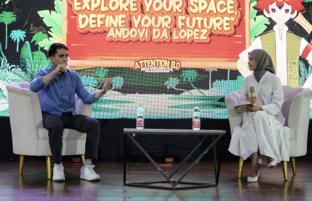 Dalam talkshow bertema “Explore Your Space, Define Your Future”, Andovi membagikan pengalaman pribadinya dalam mengeksplorasi berbagai ruang kehidupan, menyusun perencanaan masa depan, serta memotivasi peserta ATTENTION 8.0 agar tidak ragu mencoba dan mengenali potensi diri di tengah ketidakpastian pilihan masa depan.