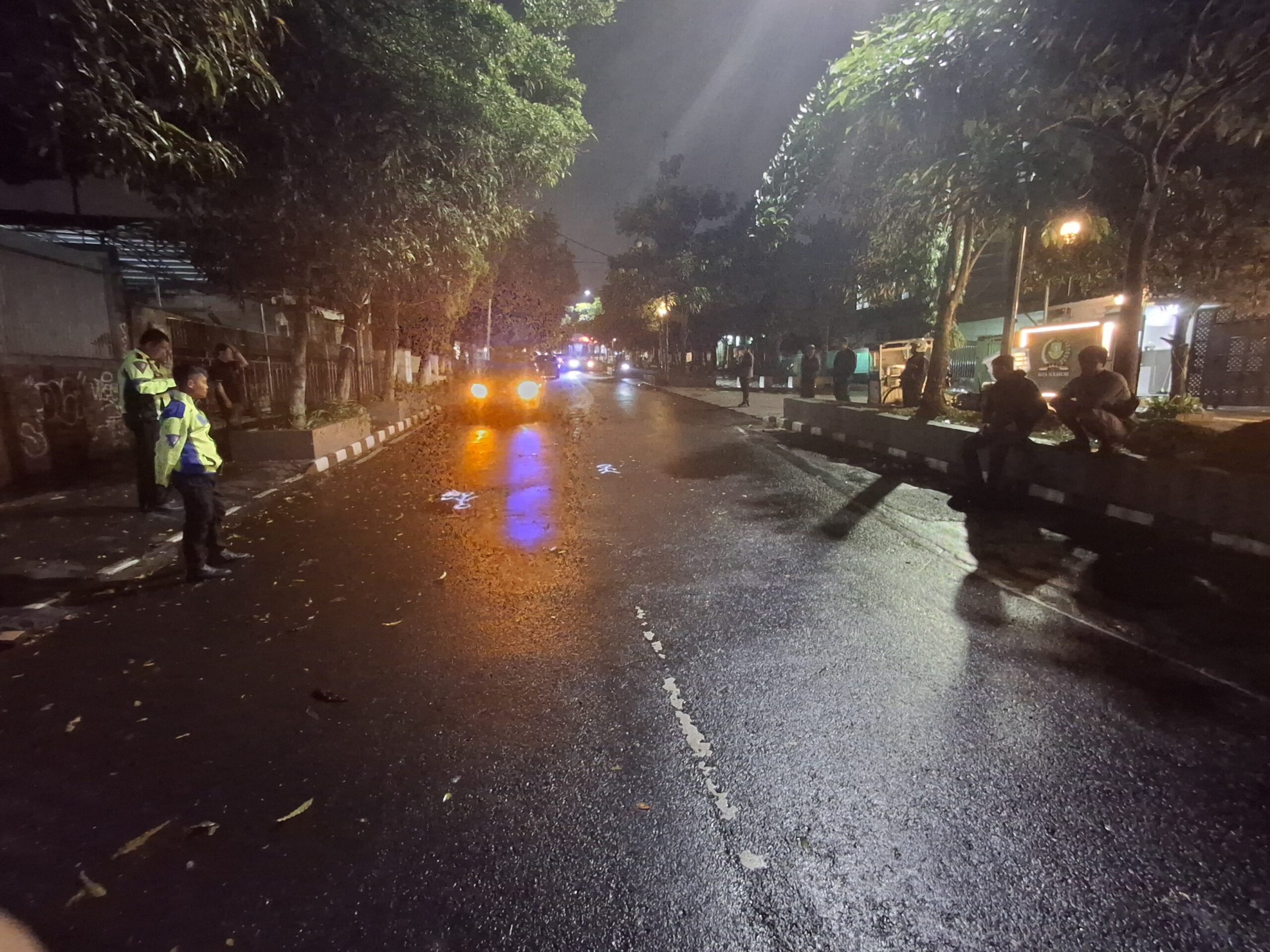 Petugas Gakkum Satlantas Polres Sukabumi Kota saat melakukan olah TKP di lokasi kejadian kecelakaan didepan Gedung DPRD Kota Sukabumi. Foto/Istimewa