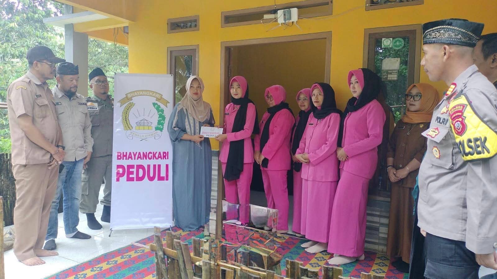 Bhayangkari Peduli, Polsek Jampangkulon Serahkan Bantuan ke Keluarga Almarhum NS