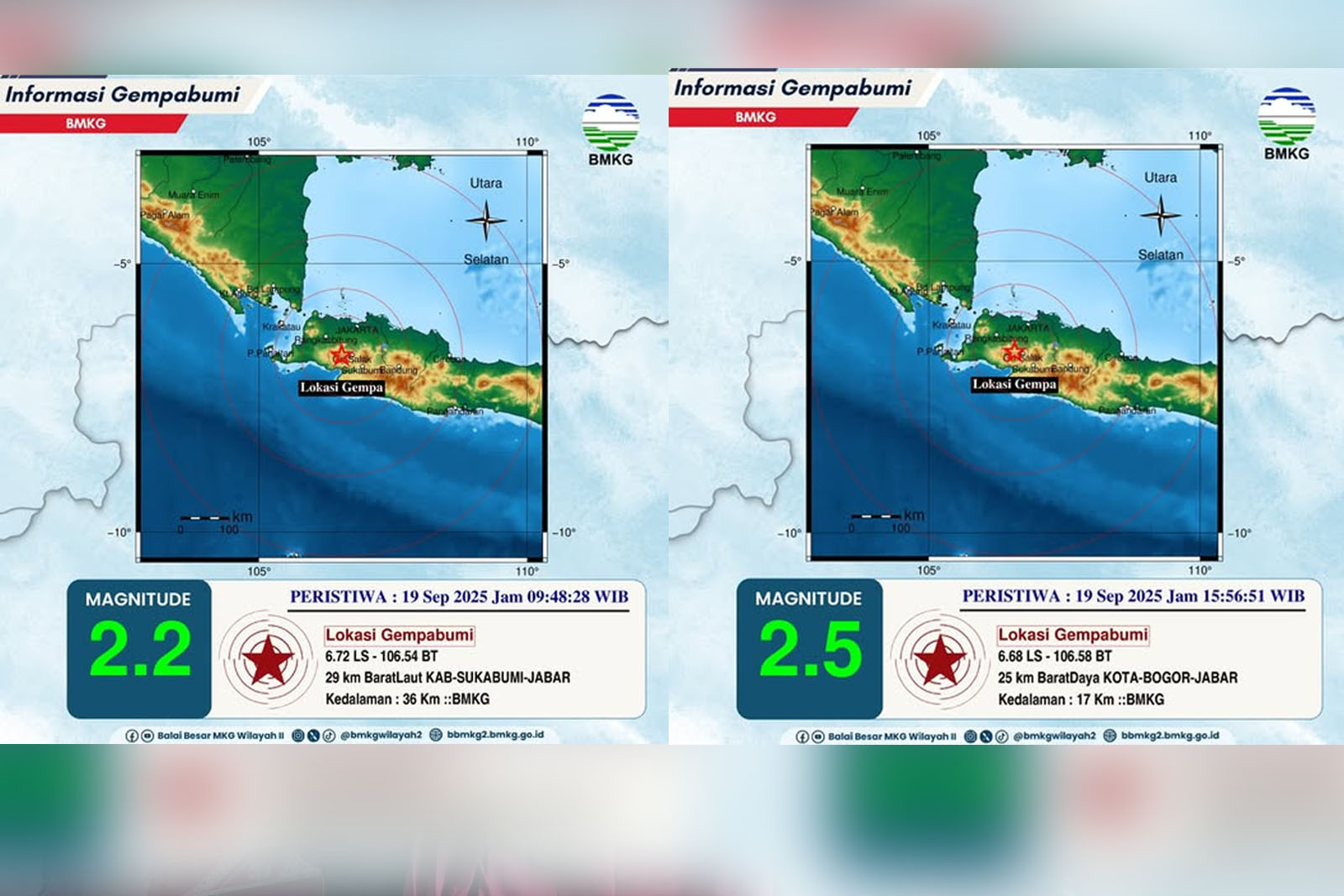 SUKABUMI – Badan Meteorologi, Klimatologi, dan Geofisika (BMKG) mencatat dua kali gempa terjadi wilayah sekitar Sukabumi pada Jumat (19/09/2025). Titik pusat dua kali gempa tersebut terbilang dangkal.
