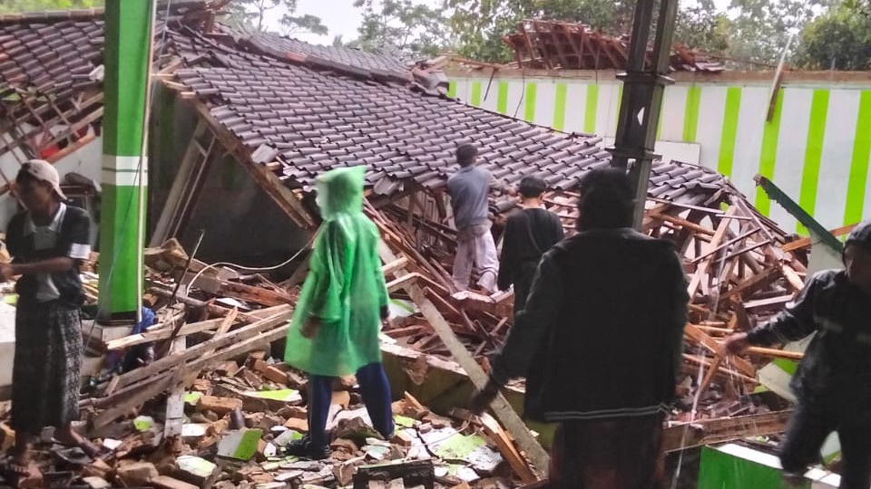 Bangunan pesantren milik Ahmad Mustopa (50), seorang pengajar, ambruk sekitar pukul 08.00 WIB. Bangunan yang biasa digunakan sebagai Madrasah Diniyah (MD) dan tempat pengajian ibu-ibu itu roboh tanpa menimbulkan korban jiwa.
