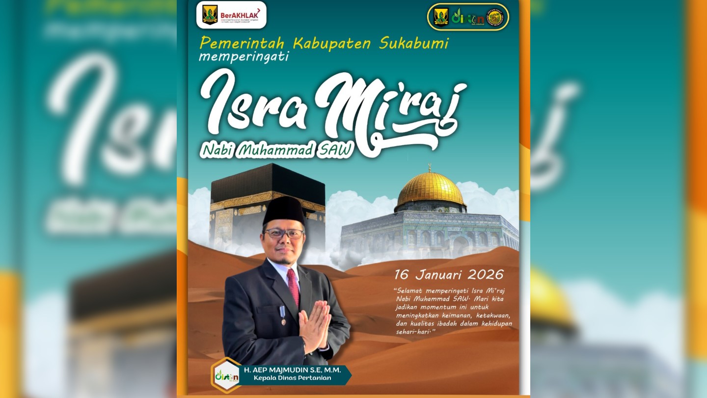 “Atas nama Dinas Pertanian Kabupaten Sukabumi, kami mengucapkan Selamat Memperingati Isra Mi’raj Nabi Muhammad SAW. Semoga peringatan ini menjadi pengingat bagi kita semua untuk senantiasa meningkatkan kualitas iman, takwa, serta integritas dalam bekerja dan melayani masyarakat,” ujar Aep Majmudin, Jum’at (16/1/2026).