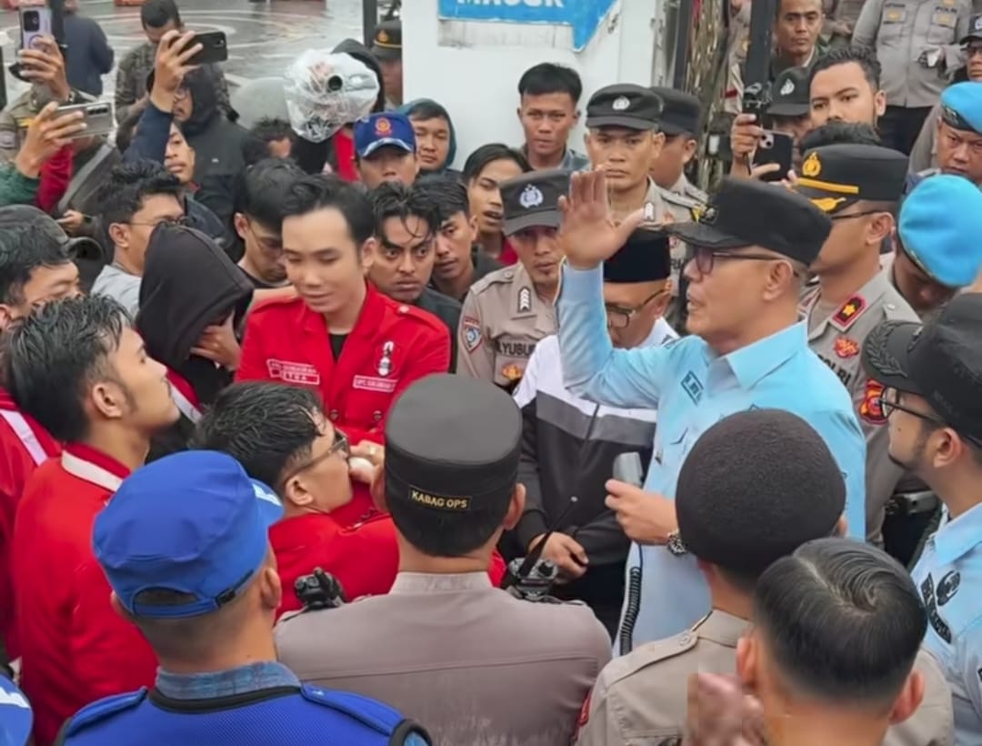 Wali Kota Sukabumi, Ayep Zaki, di tengah masa aksi dari GMNI Sukabumi Raya. (Foto: Sukabumiku.id)
