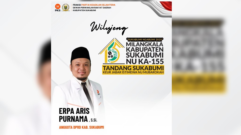 SUKABUMI – Anggota Komisi I DPRD Kabupaten Sukabumi dari Fraksi PKS, Erpa Aris Purnama, menyampaikan ucapan selamat atas Hari Jadi Kabupaten Sukabumi ke-155 yang diperingati pada Rabu (10/9/25). Menurutnya, peringatan ini menjadi momentum penting untuk memperkuat semangat kebersamaan sekaligus meningkatkan pelayanan kepada masyarakat.