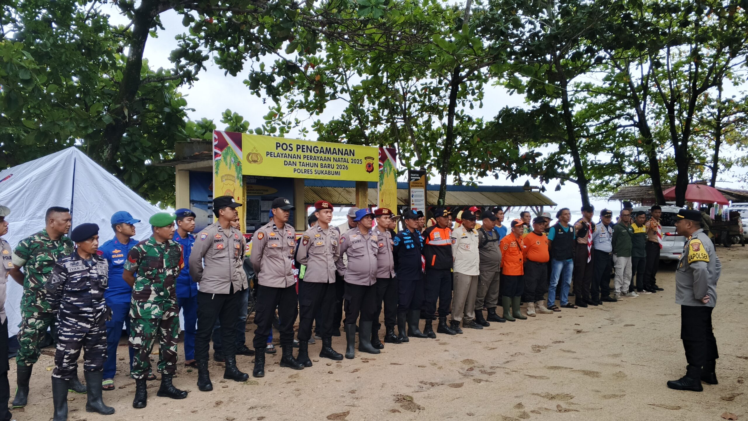 SUKABUMI – Menghadapi malam pergantian Tahun Baru 2026, Forum Koordinasi Pimpinan Kecamatan (Forkopimcam) Ciracap memperketat pengamanan di sejumlah kawasan wisata di wilayah Kecamatan Ciracap, Kabupaten Sukabumi, Rabu (31/12/2025).