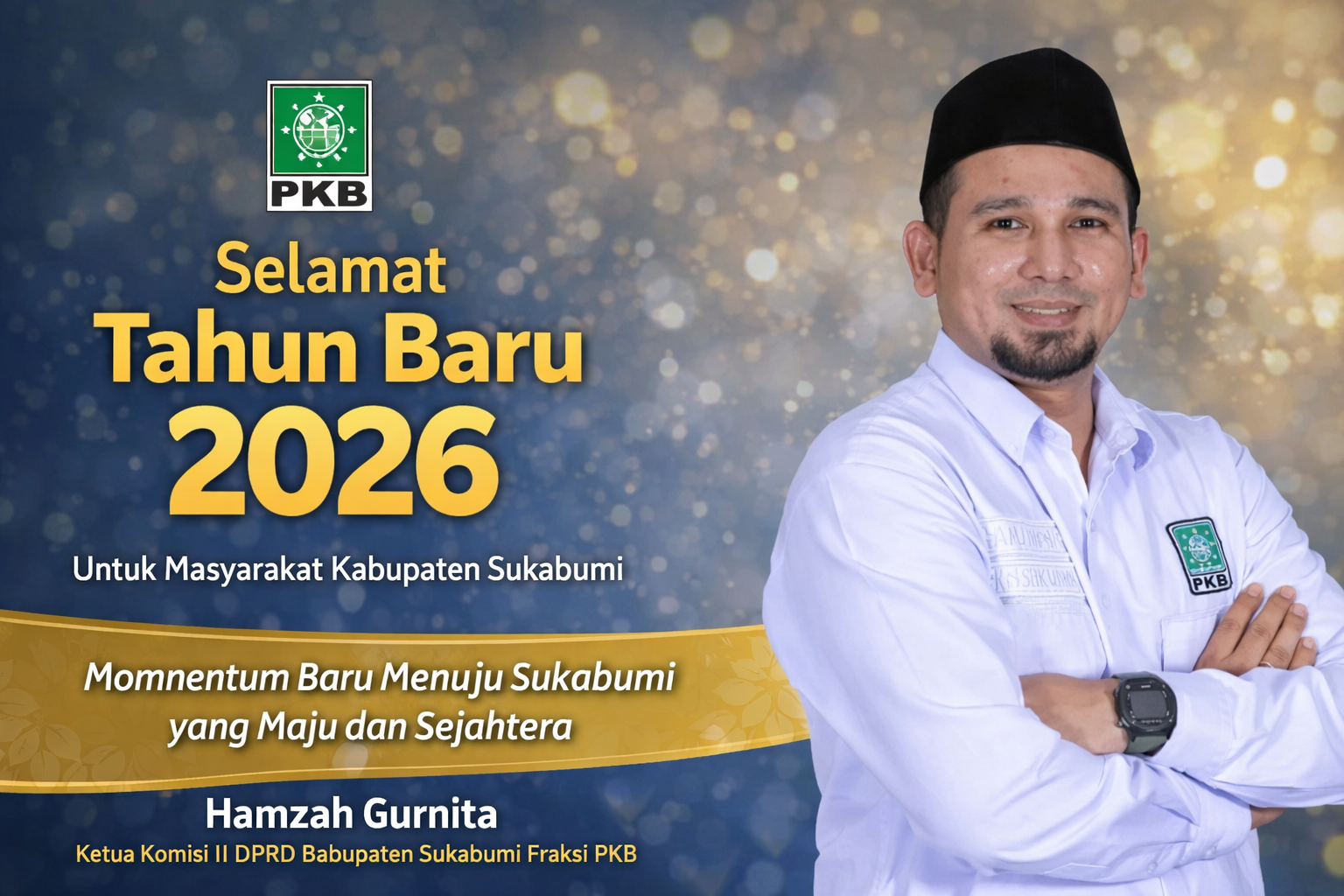 SUKABUMI – Ketua Komisi II DPRD Kabupaten Sukabumi dari Fraksi Partai Kebangkitan Bangsa (PKB), Hamzah Gurnita, menyampaikan ucapan Selamat Tahun Baru 2026 kepada seluruh masyarakat Kabupaten Sukabumi. Ia mengajak momentum pergantian tahun dimaknai sebagai awal penguatan komitmen bersama dalam mendorong pembangunan daerah yang berorientasi pada peningkatan kesejahteraan masyarakat.