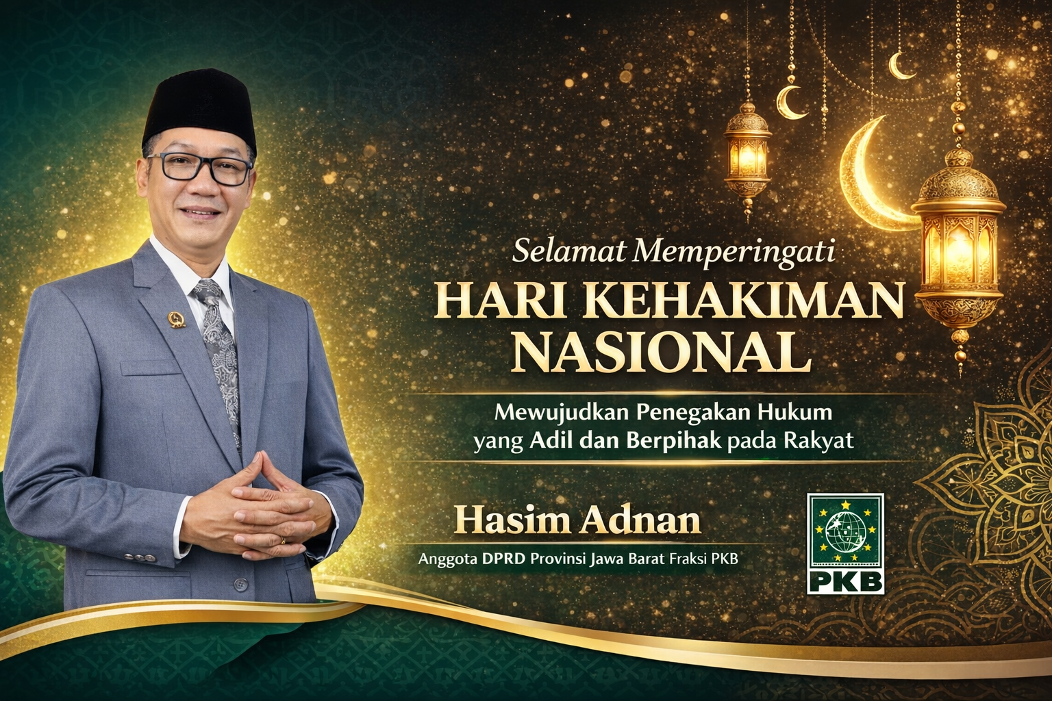 SUKABUMI — Peringatan Hari Kehakiman Nasional menjadi momentum penting untuk memperkuat komitmen dalam mewujudkan sistem peradilan yang adil, independen, dan berpihak kepada masyarakat. Hal tersebut disampaikan Anggota DPRD Provinsi Jawa Barat Fraksi Partai Kebangkitan Bangsa (PKB), Hasim Adnan, saat dimintai tanggapan terkait peringatan tersebut.