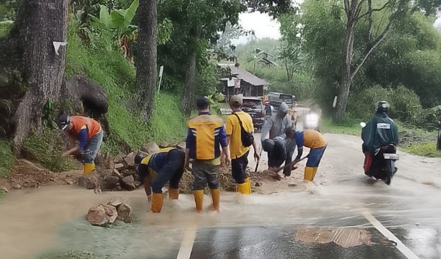 “Material longsor saat ini sedang dibersihkan oleh pihak PU Wilayah II,” ujar petugas P2BK Kecamatan Nyalindung, A. Ahmad.
