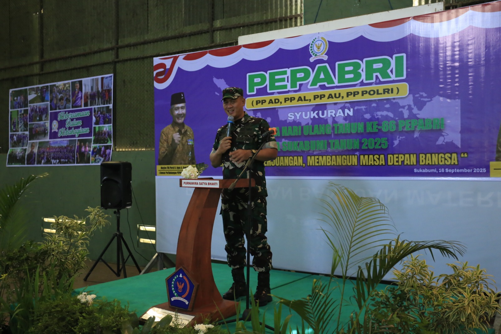 SUKABUMI – Syukuran Hari Ulang Tahun (HUT) Persatuan Purnawirawan Warakawuri TNI dan Polri (PEPABRI) ke-66 Tahun 2025 digelar di GOR Makodim 0607/Kota Sukabumi, Jalan RA. Kosasih, Sukaraja, Kabupaten Sukabumi, Selasa (16/09/25).
