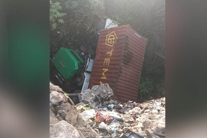 “Kontainer terjun ke jurang, diakibatkan supirnya mengantuk,” ujar Rahmat Hidayat, salah seorang warga.