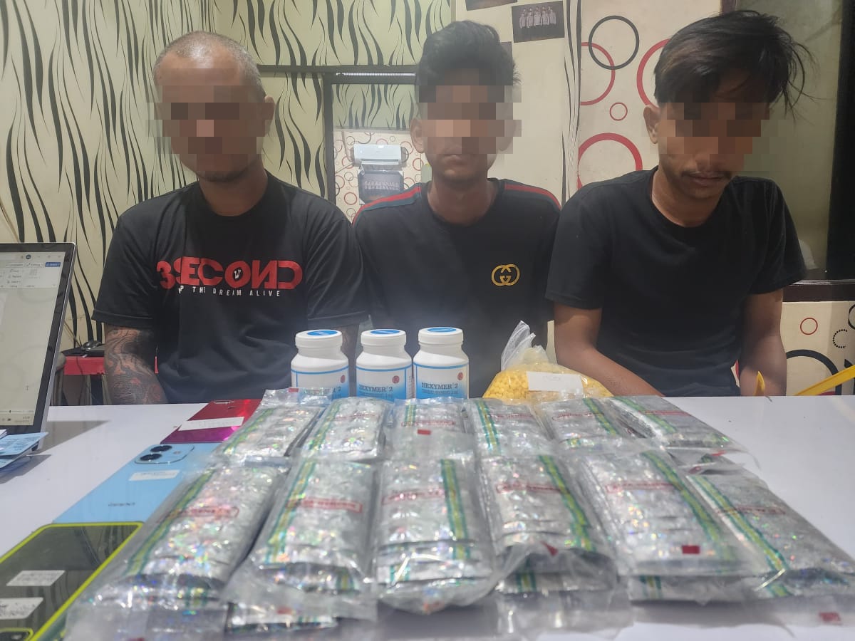 “Dari hasil penyelidikan, tim kami berhasil mengamankan tiga terduga pelaku saat berada di sekitar jembatan Cicadas Hilir. Saat penggeledahan, ditemukan ribuan butir Tramadol dan Hexymer yang siap diedarkan,” ungkap AKP Tenda, Kamis (9/10/2025).