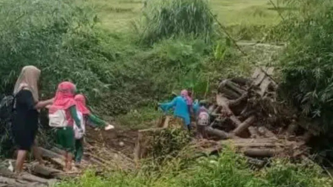 “Dalam satu bulan ini sudah tiga kali jembatan rusak akibat banjir. Sekarang kondisinya sangat parah, anak-anak terpaksa berjalan di atas sisa-sisa kayu yang licin dan berisiko tinggi,” ujarnya, Selasa (28/4/2026).