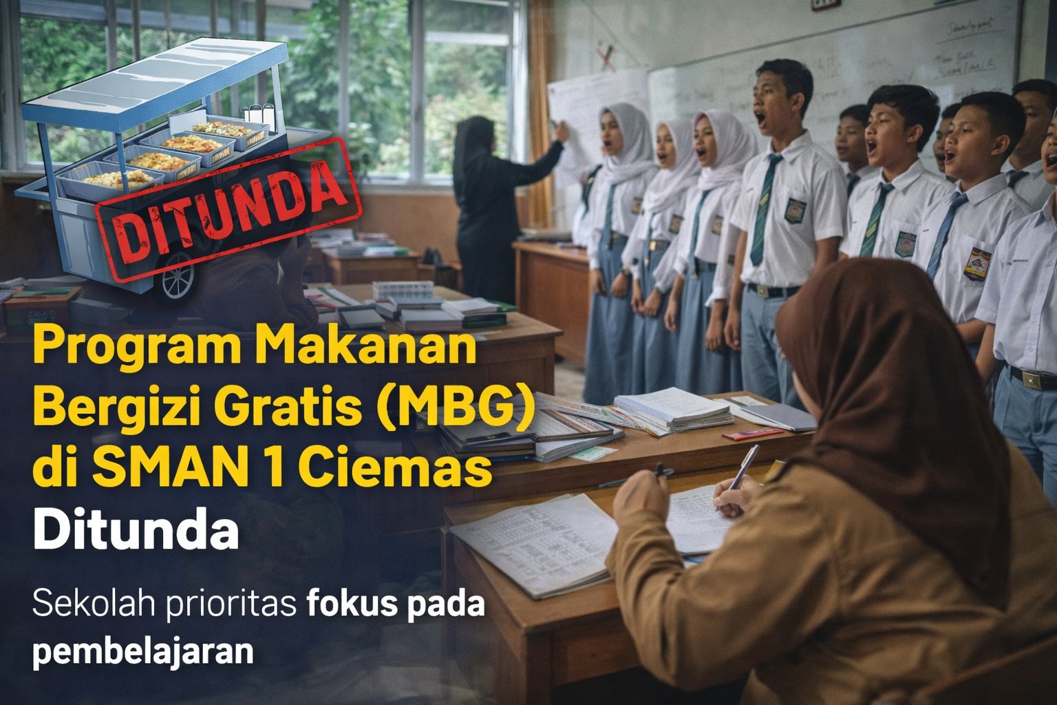SUKABUMI — Program Makan Bergizi Gratis (MBG) di SMAN 1 Ciemas untuk sementara waktu resmi ditunda. Keputusan ini diumumkan langsung oleh manajemen sekolah melalui surat edaran bernomor 043/TU.01.02/SMANSAC yang diunggah di akun Facebook resmi sekolah, Selasa (7/4/2026).
