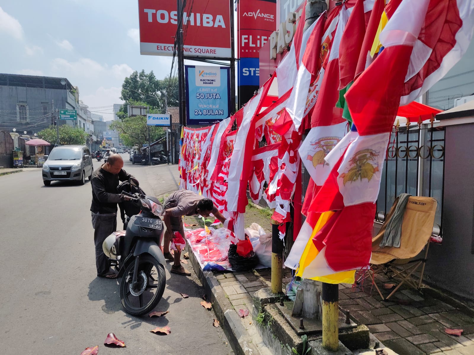 Salah satu penjual, Ali (41), rela merantau dari Cileles, Garut ke Sukabumi demi mencari rezeki. Sudah satu dekade terakhir, ia setia berjualan bendera merah putih setiap musim Agustusan.