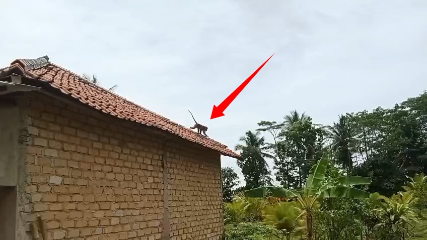 Hendra, salah seorang warga setempat, mengaku pertama kali melihat monyet itu saat dirinya pulang dari Shalat Jumat. Ketika tiba di rumah, monyet tersebut sudah berada di atas genting rumah milik tetangganya.