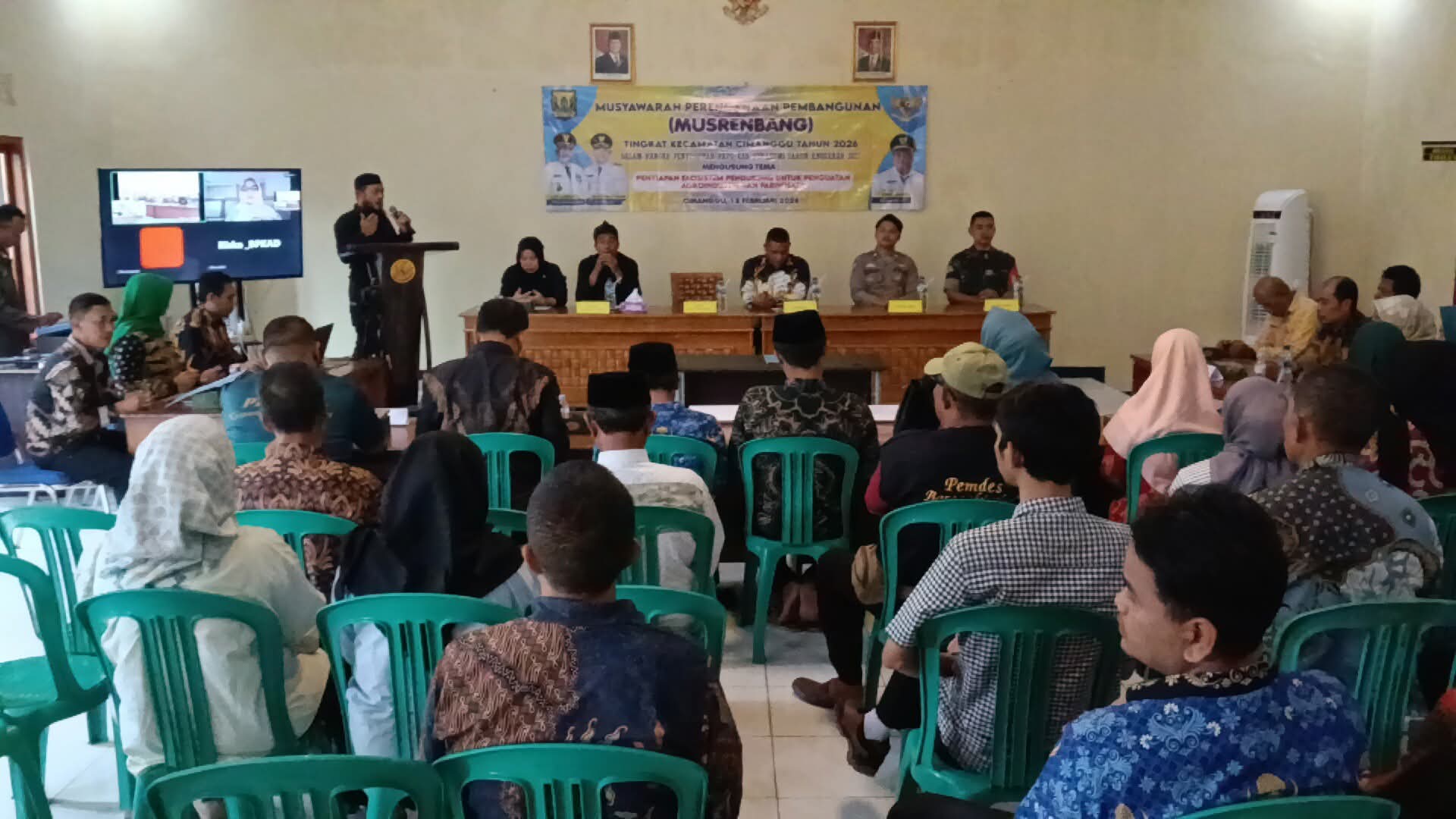 SUKABUMI – Pemerintah Kecamatan Cimanggu menggelar Musyawarah Perencanaan Pembangunan (Musrenbang) Tahun 2026 di Aula Kantor Desa Cimanggu, Rabu (12/2/2026). Kegiatan ini menjadi forum strategis dalam merumuskan arah pembangunan kecamatan dengan mengusung tema “Penyiapan Ekosistem Pendukung untuk Penguatan Agroindustri dan Pariwisata.”