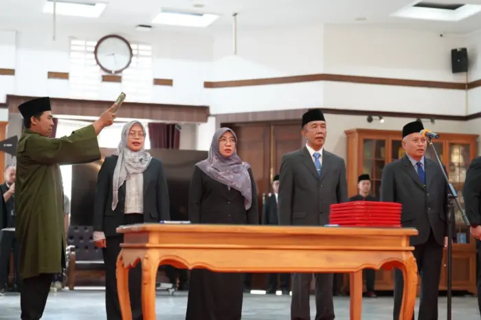 SUKABUMI – Pemerintah Kota Sukabumi kembali melakukan penyegaran birokrasi melalui pelantikan dan mutasi Pejabat Pimpinan Tinggi (JPT) Pratama yang digelar di Ruang Utama Balai Kota Sukabumi, Rabu (4/2/2026) pagi. Langkah ini dilakukan sebagai bagian dari upaya memperkuat kinerja organisasi dan meningkatkan kualitas pelayanan kepada masyarakat.