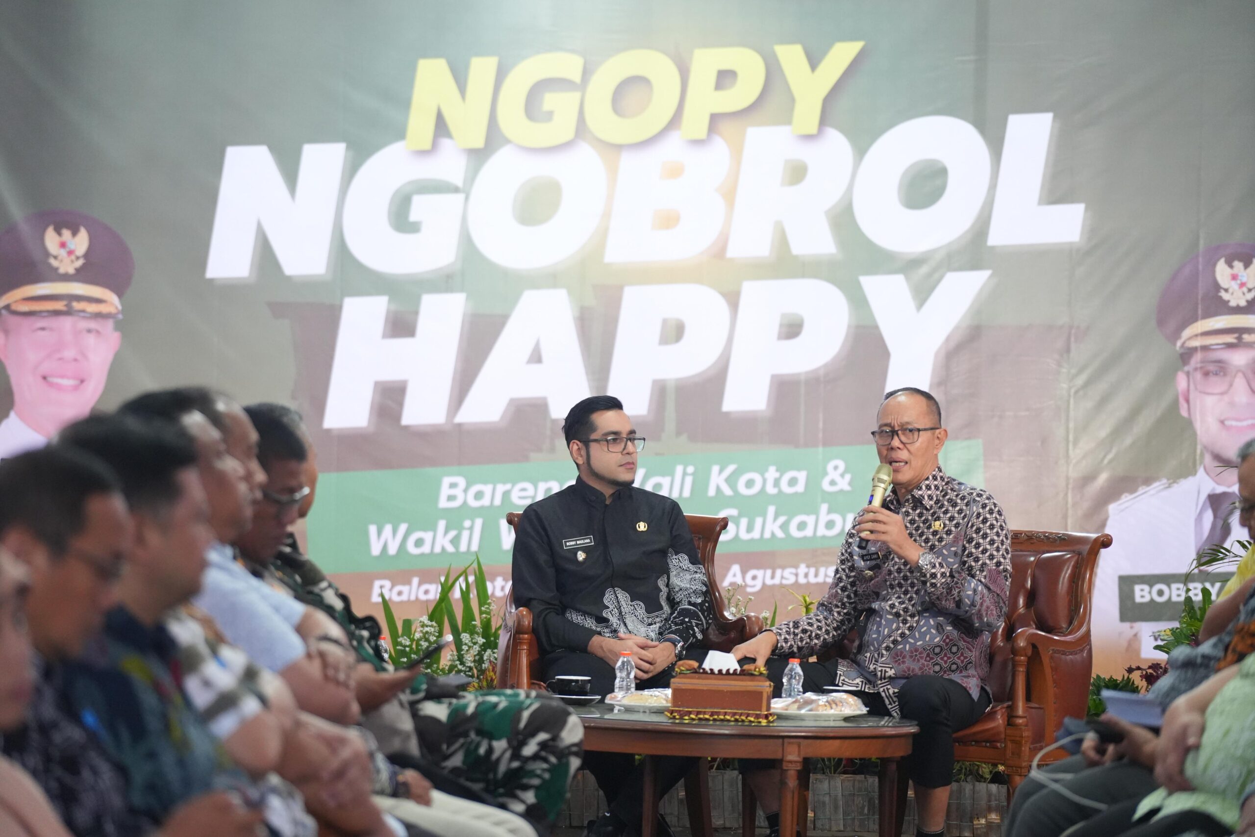 SUKABUMI – Pemerintah Kota (Pemkot) Sukabumi menggelar Ngobrol Happy atau Ngopy edisi perdana di Halaman Sekretariat Daerah (Setda) Kota Sukabumi, Kamis (14/08/25).
