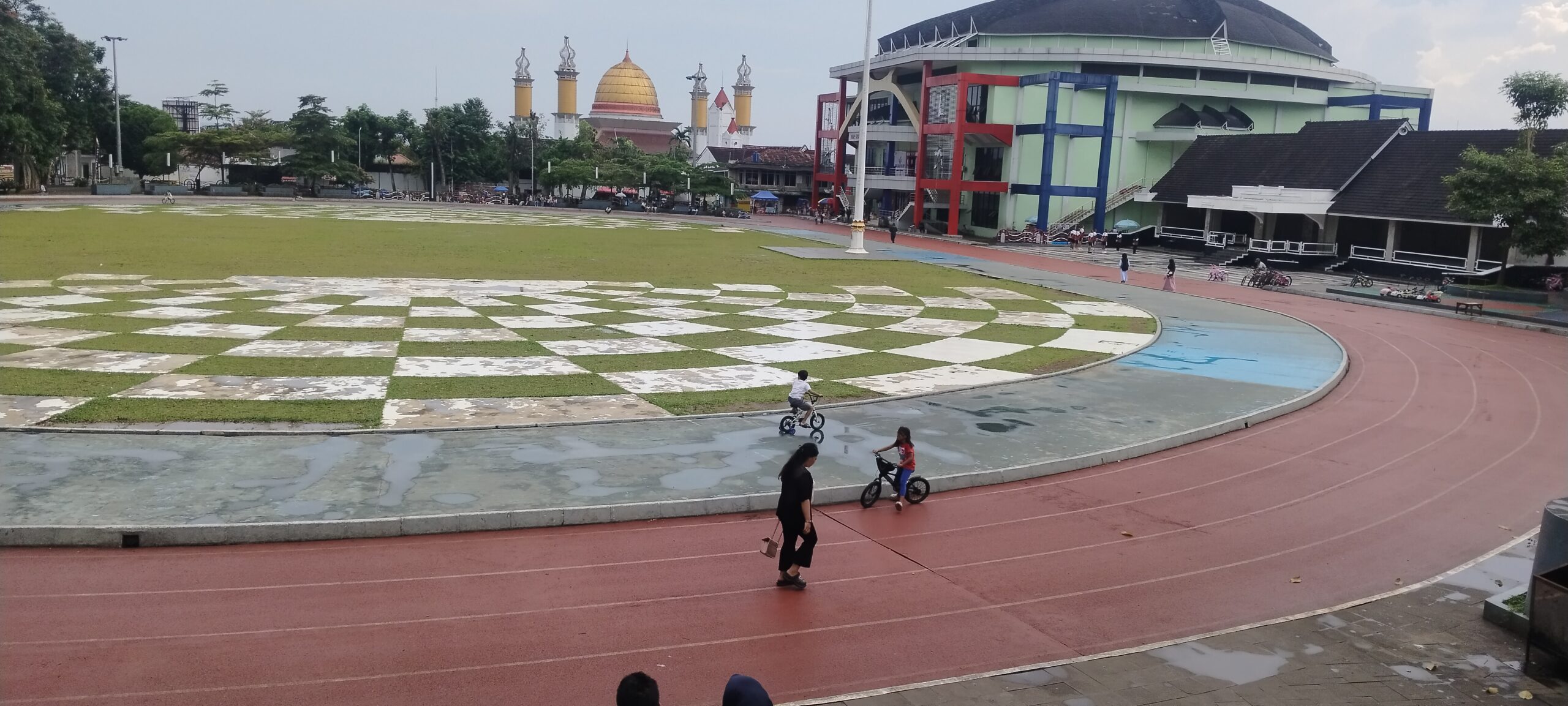 Sejumlah warga saat melakukan aktivitas di Lapang Merdeka Kota Sukabumi pada Senin (27/04/26). (Foto/Rizky Sukabumiku.id)