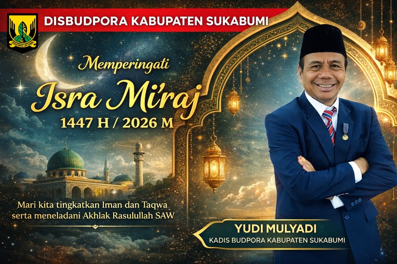 SUKABUMI – Dalam rangka memperingati Isra Mi’raj Nabi Muhammad SAW, Kepala Dinas Kebudayaan, Pemuda, dan Olahraga (Disbudpora) Kabupaten Sukabumi, Yudi Mulyadi, mengajak seluruh masyarakat untuk menjadikan peristiwa Isra Mi’raj sebagai momentum memperkuat keimanan dan nilai-nilai spiritual dalam kehidupan sehari-hari.