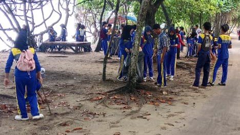 Dengan membawa perlengkapan sederhana seperti karung dan sarung tangan, para siswa tampak antusias memungut sampah yang berserakan di sepanjang garis pantai. Sampah plastik, kayu, hingga limbah rumah tangga menjadi fokus pembersihan dalam aksi tersebut.