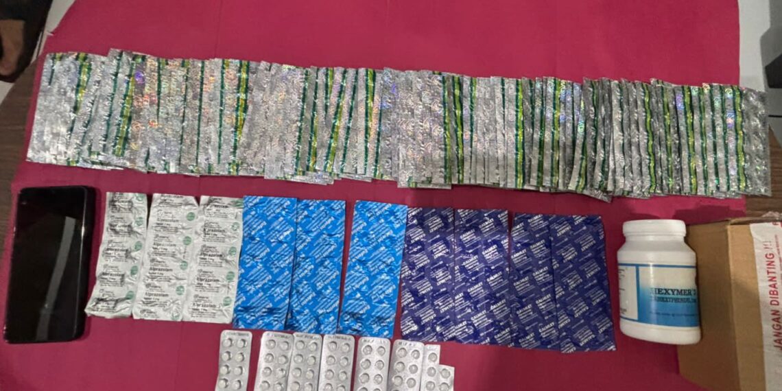 Dalam penggerebekan tersebut, polisi menemukan satu kardus cokelat berisi ribuan butir obat terlarang berbagai jenis. Barang bukti yang diamankan di antaranya 69 butir Riklona, 40 butir Camlet Alprazolam, 30 butir Alprazolam Mersi, 1.100 butir Tramadol, dan 1.000 butir Hexymer, serta satu unit telepon genggam yang diduga digunakan sebagai alat komunikasi transaksi.