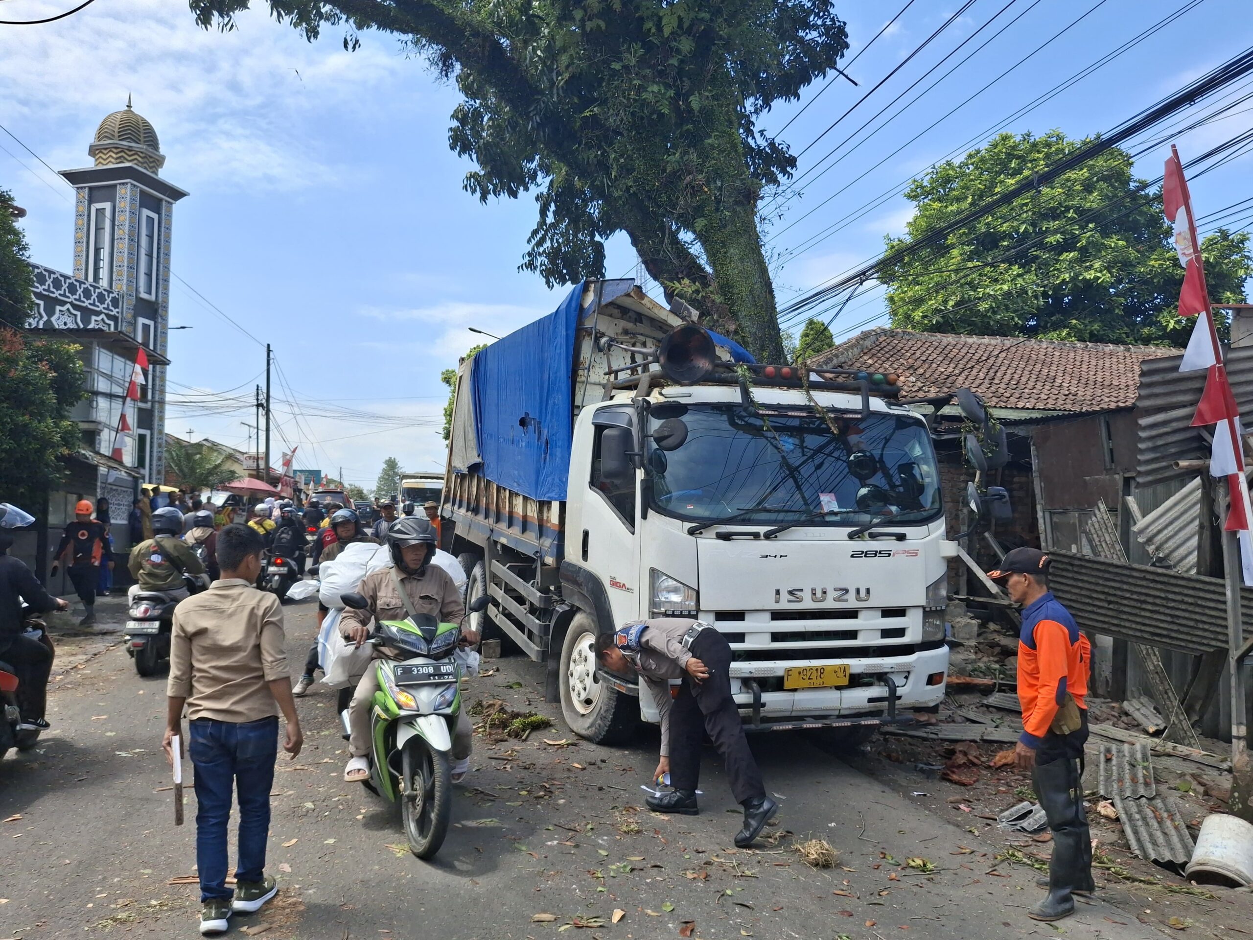 “Saat tiba di lokasi kejadian, pengemudi truk menghindari sepeda motor lain hingga menepi ke kiri jalan dan menabrak pohon,” ujarnya.