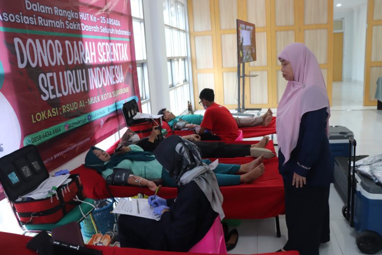 SUKABUMI – Dalam rangka memperingati Hari Ulang Tahun ke-25 Asosiasi Rumah Sakit Daerah Seluruh Indonesia (ARSADA), RSUD Al-Mulk Kota Sukabumi turut ambil bagian dalam aksi donor darah serentak yang digelar secara nasional pada Senin, 3 November 2025.