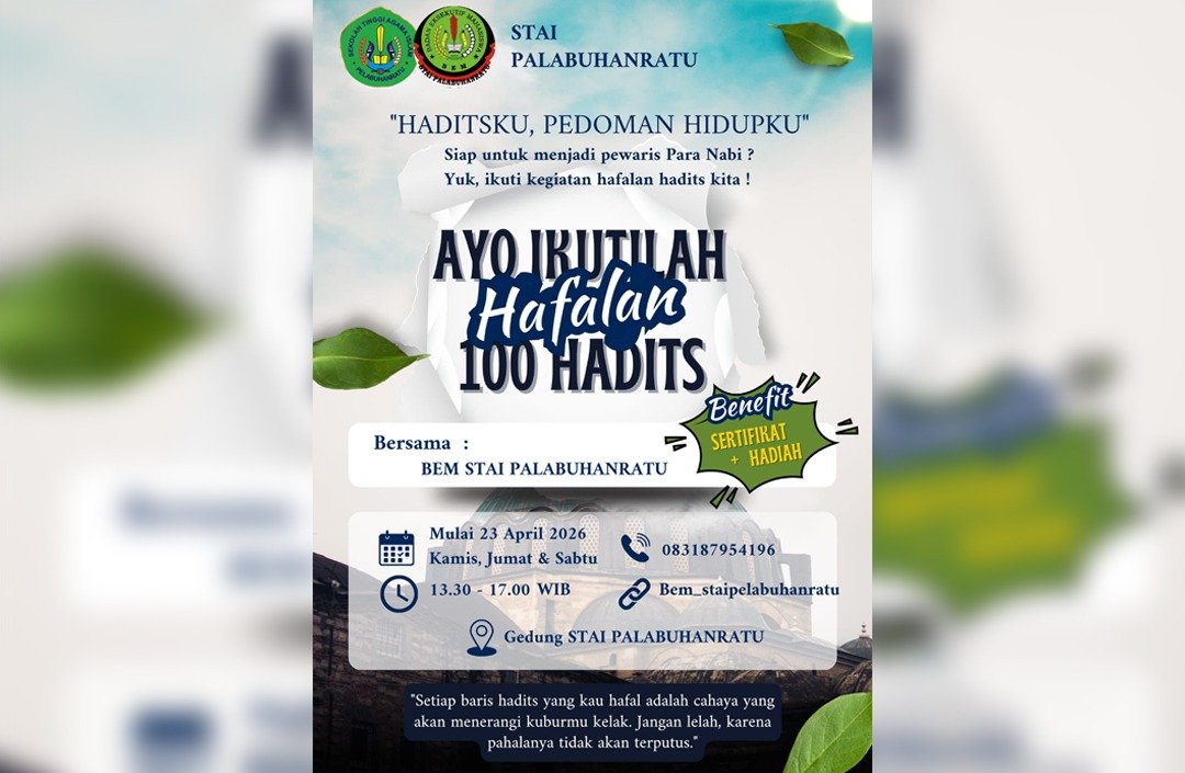 SUKABUMI – Badan Eksekutif Mahasiswa (BEM) STAI Palabuhanratu menggelar program Hafalan Hadits sebagai kegiatan rutin yang ditujukan bagi seluruh mahasiswa. Program ini menjadi salah satu upaya kampus dalam menanamkan nilai-nilai keislaman sekaligus memperkuat kecintaan terhadap sunnah Rasulullah SAW.