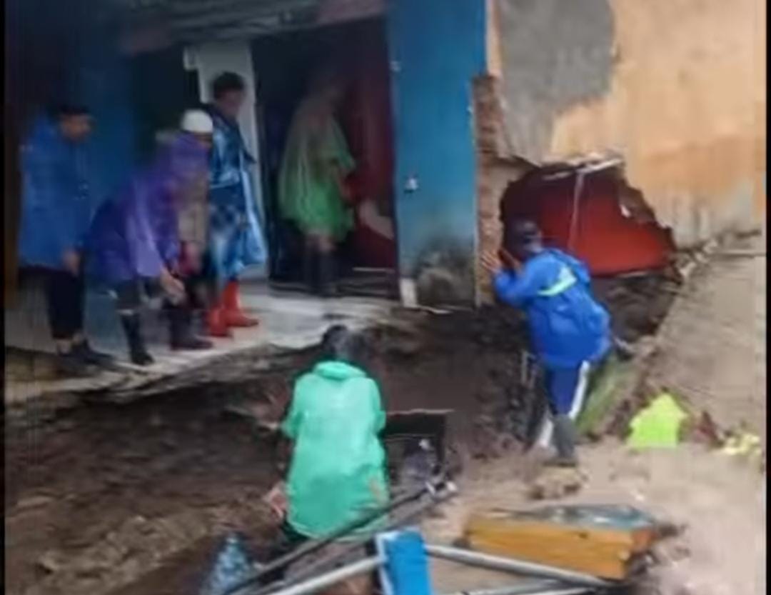 Usai kejadian, warga sekitar bersama Babinsa langsung melakukan penanganan darurat. Mereka membersihkan puing bangunan serta memasang penyangga sementara untuk mencegah longsor susulan.