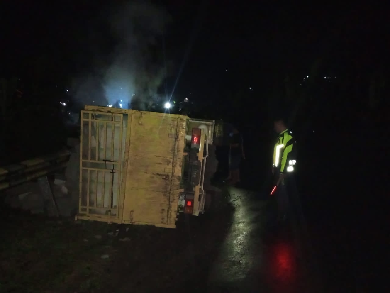 Peristiwa yang terjadi sekitar pukul 23.00 WIB itu melibatkan truk Mitsubishi Colt Diesel bernomor polisi F 8331 VB yang dikemudikan Dimas Ardiansyah (23), warga Kecamatan Ciracap, Kabupaten Sukabumi.