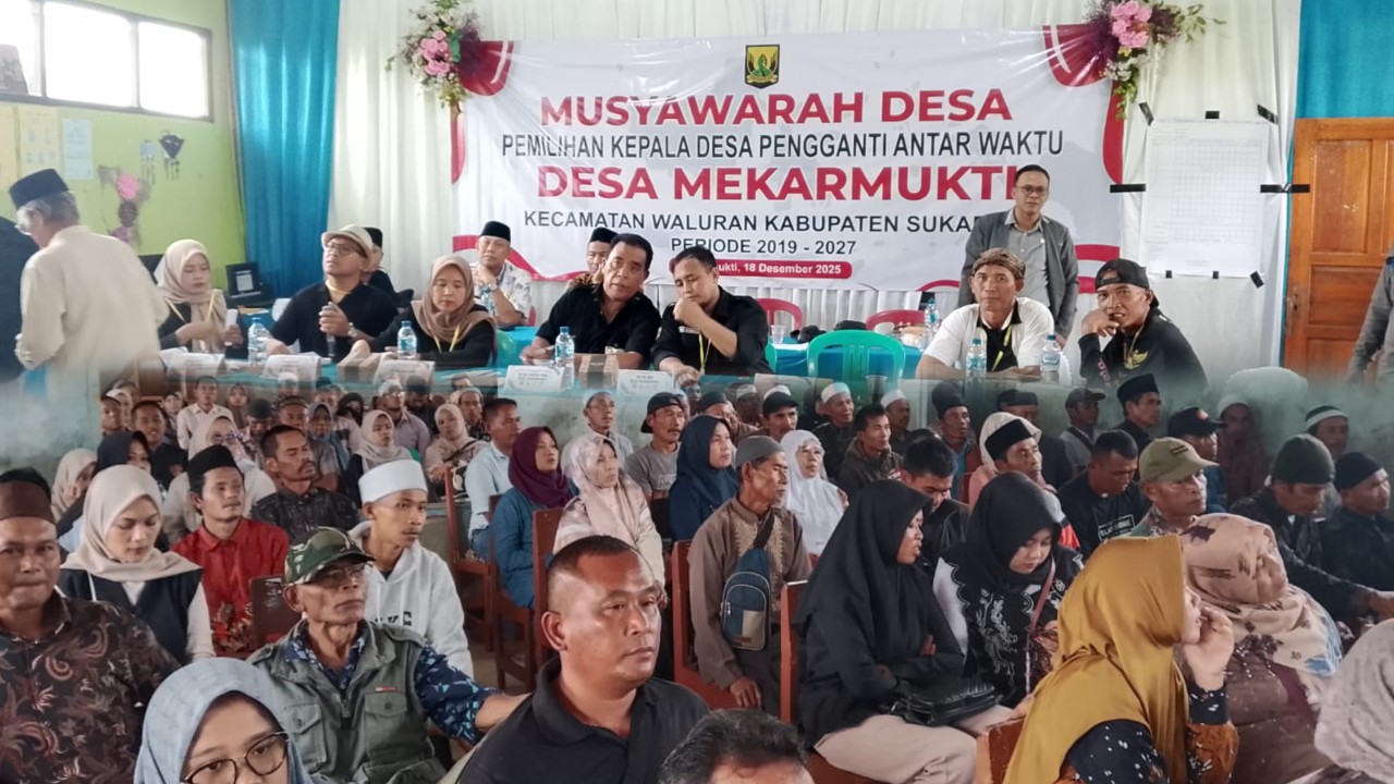 SUKABUMI – Pemilihan Kepala Desa Pengganti Antar Waktu (PAW) Desa Mekarmukti, Kecamatan Waluran, Kabupaten Sukabumi, menetapkan Dedi sebagai kepala desa terpilih. Penetapan dilakukan melalui Musyawarah Desa (Musdes) pada Kamis (18/12/2025).