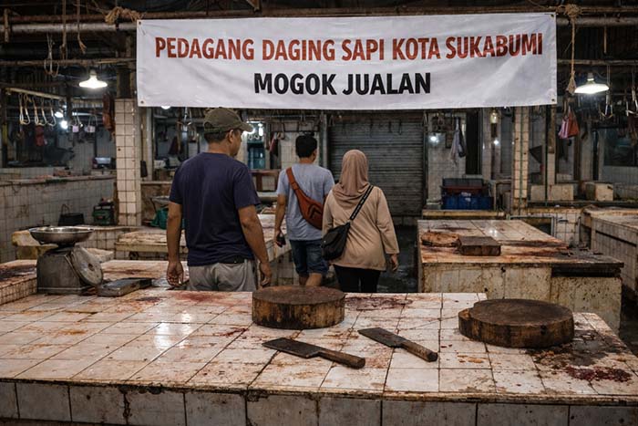 “Kalau toko daging, termasuk frozen food, masih tetap berjualan. Yang mogok itu pedagang pasar yang memotong sapi, baik lokal maupun impor,” jelas Riki.