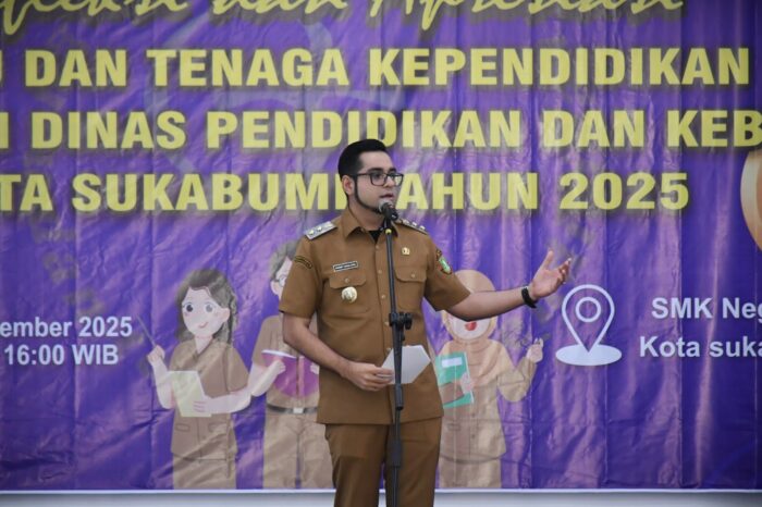 SUKABUMI – Wakil Wali Kota Sukabumi, Bobby Maulana, menegaskan peran strategis guru dan keluarga sebagai dua lingkungan utama pembentuk karakter anak di era transformasi digital. Pernyataan ini disampaikannya saat membuka Kegiatan Refleksi dan Apresiasi Guru dan Tenaga Kependidikan di Aula SMKN 1 Kota Sukabumi, Senin (24/11/2025).