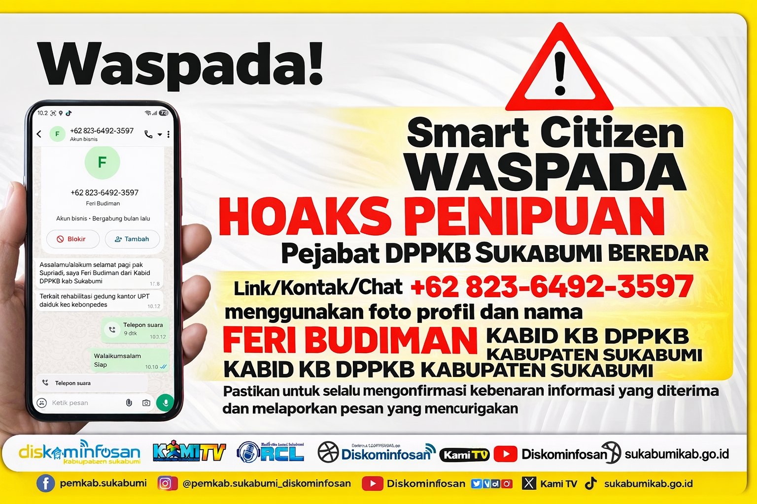 Pemerintah Kabupaten Sukabumi melalui Dinas Komunikasi Informatika dan Persandian (Diskominfosan) mengingatkan masyarakat agar tidak mudah percaya terhadap pesan yang mencurigakan, terlebih yang berkaitan dengan permintaan informasi, uang, atau tindakan tertentu.